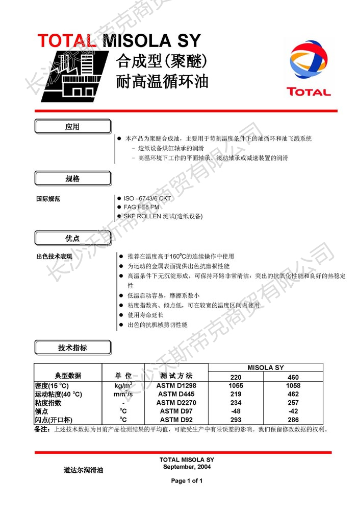 道達(dá)爾Misola SY合成循環(huán)油 詳細(xì)說明
