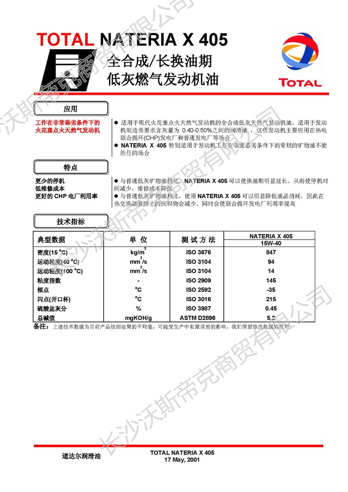 道達(dá)爾Nateria X405燃?xì)獍l(fā)動(dòng)機(jī)油 詳細(xì)說明