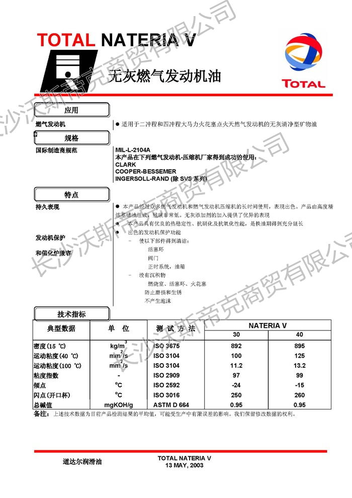 道達(dá)爾Nateria V燃?xì)獍l(fā)動(dòng)機(jī)油 詳細(xì)說明