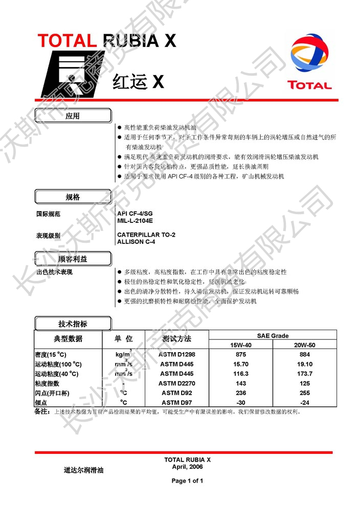 道達(dá)爾紅運X工業(yè)發(fā)動機油 詳細(xì)說明