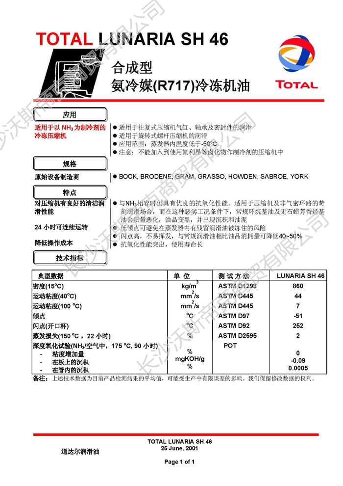 道達(dá)爾Lunaria SH46冷凍機(jī)油  詳細(xì)說(shuō)明
