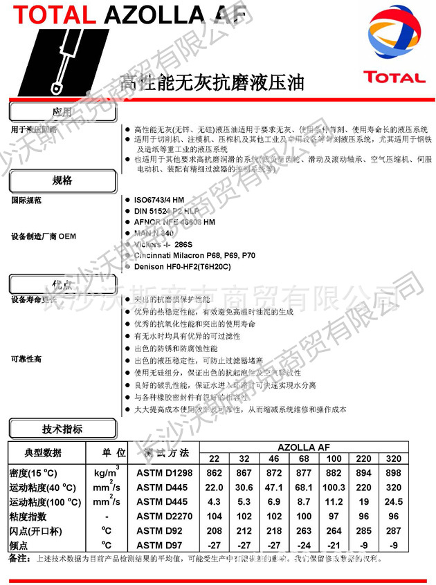 道達(dá)爾Azolla AF高性能無灰抗磨液壓油 詳細(xì)說明