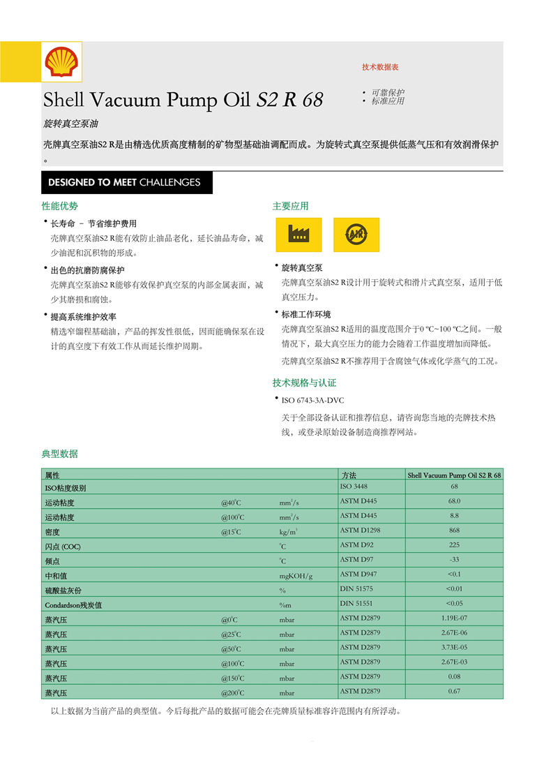 殼牌S2 R68真空泵油 詳細(xì)說明