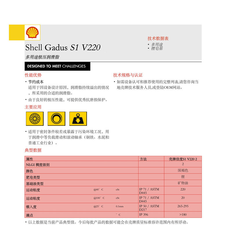 殼牌佳度S1V220潤滑脂 詳細說明