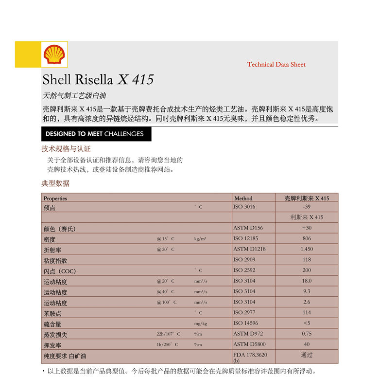 殼牌利斯來X415白礦油 詳細說明