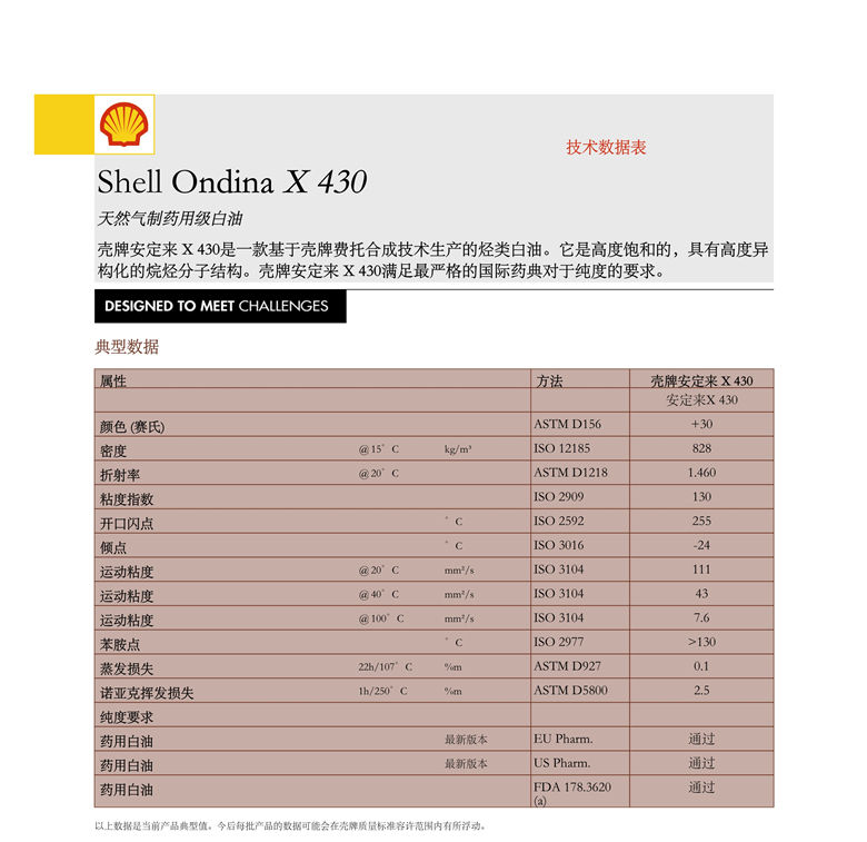 殼牌安定來X430白礦油 詳細(xì)說明
