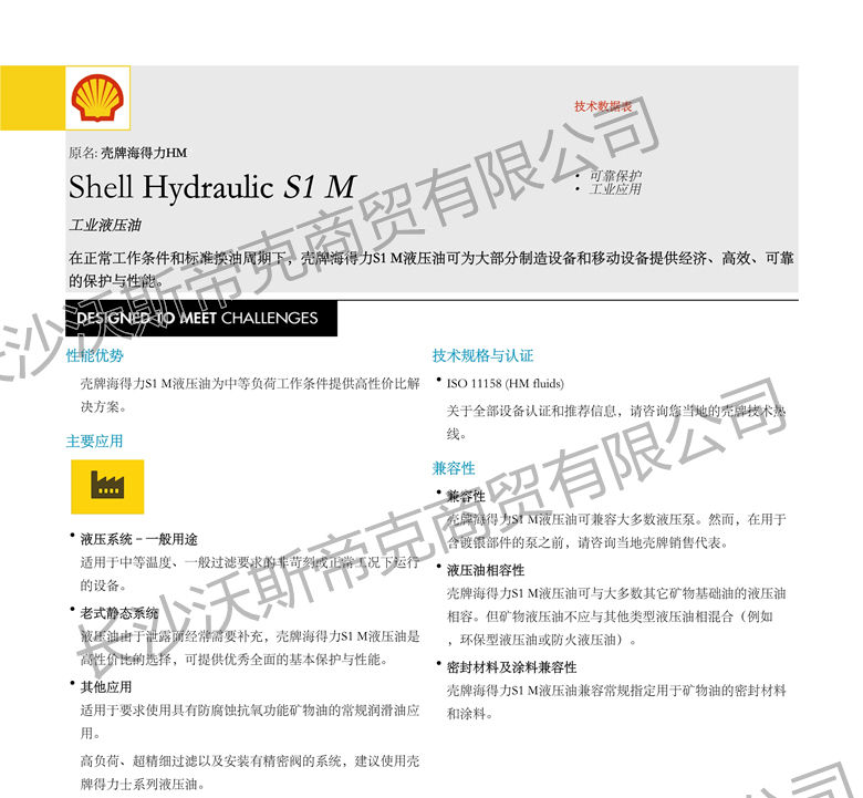 殼牌海得力S1 M液壓油 詳細說明