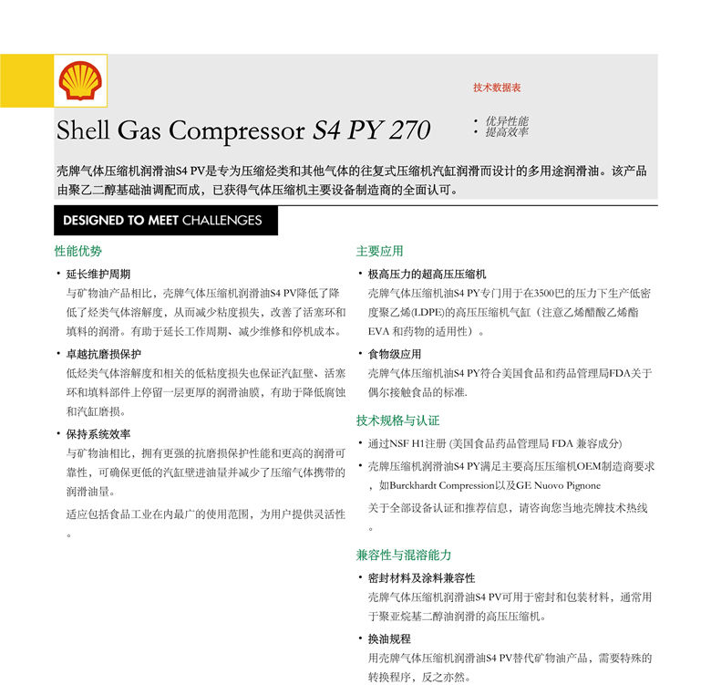 殼牌S4 PY270壓縮機(jī)油 詳細(xì)說明