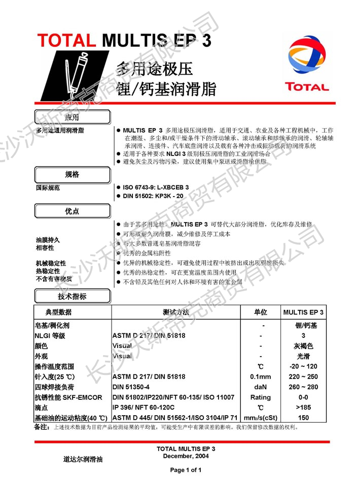 道達爾Multis EP3鋰/鈣基潤滑脂  詳細(xì)說明
