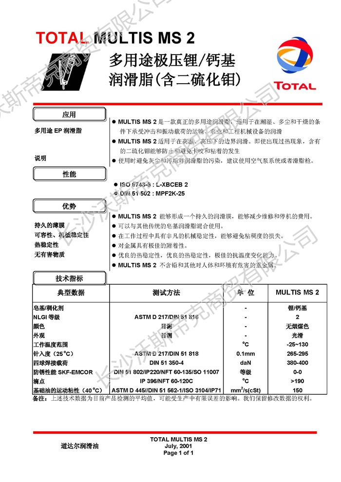 道達(dá)爾Multis MS2壓鋰/鈣基潤(rùn)滑脂 詳細(xì)說(shuō)明