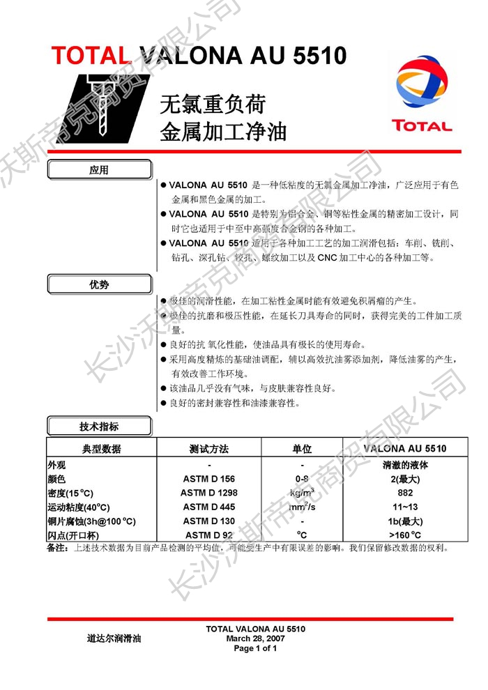 道達(dá)爾Valona AU5510金屬加工凈油 詳細(xì)說明