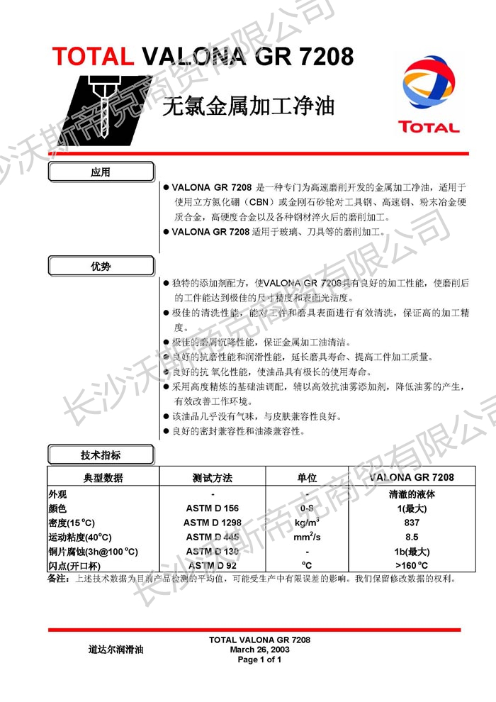 道達(dá)爾Valona GR7208加工凈油  詳細(xì)說明