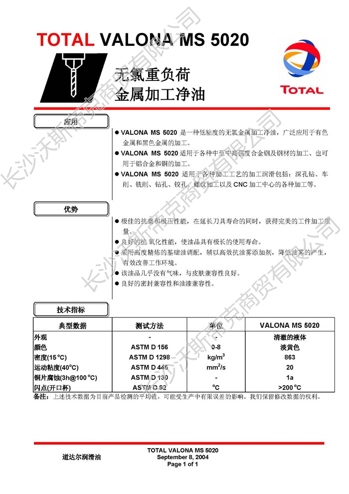 道達(dá)爾Valona MS5020金屬加工凈油  詳細(xì)說明