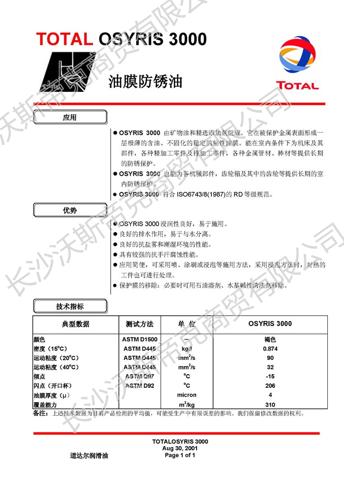 道達(dá)爾Osyris 3000油膜防銹油  詳細(xì)說(shuō)明
