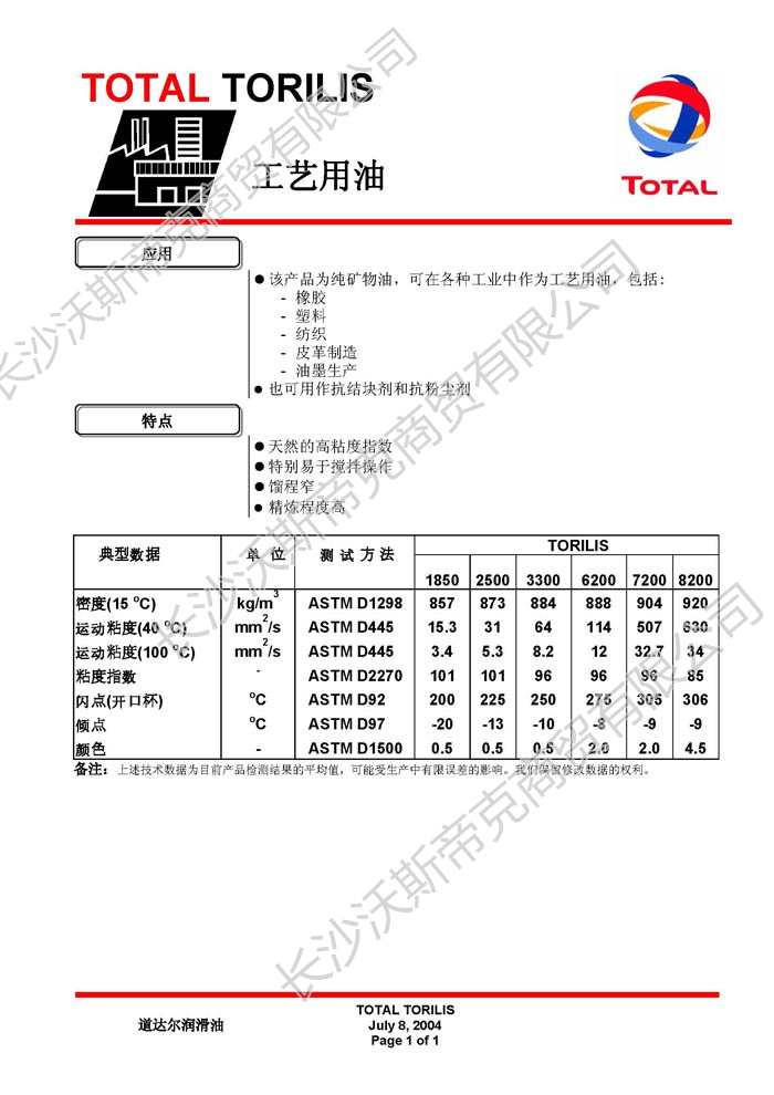 道達(dá)爾Torilis工藝用油  詳細(xì)說明