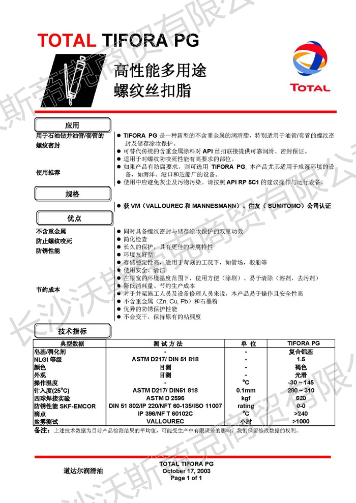道達爾Tifora PG螺紋絲扣脂  詳細說明