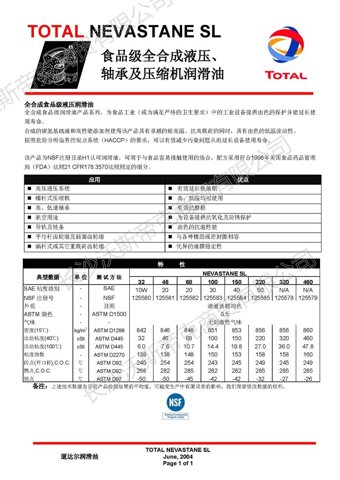 道達(dá)爾Nevastane SL壓縮機(jī)潤(rùn)滑油  詳細(xì)說明