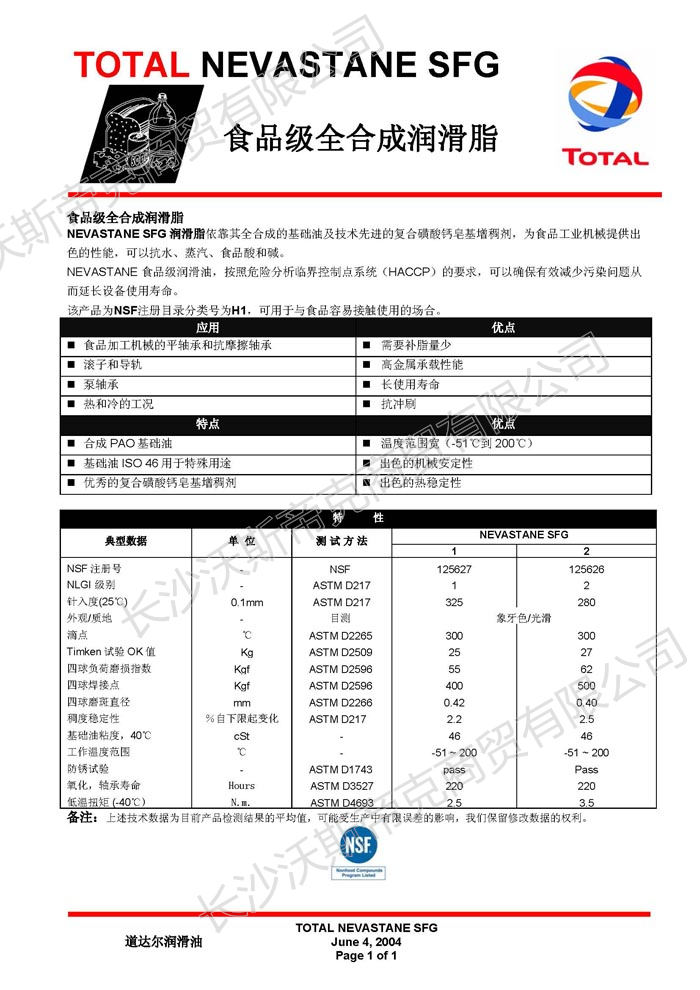 道達(dá)爾Nevastane SFG潤(rùn)滑脂  詳細(xì)說(shuō)明
