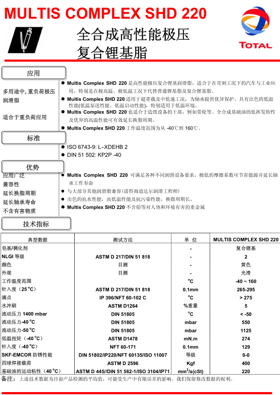 道達爾Multis Complex SHD220潤滑脂 詳細說明