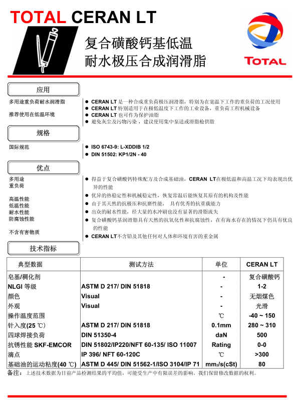 道達(dá)爾Ceran LT潤滑脂 詳細(xì)說明