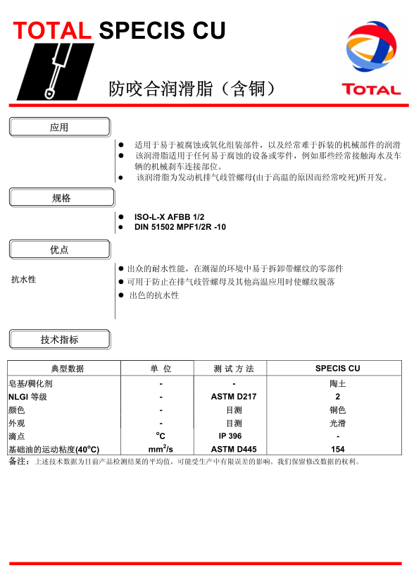 道達(dá)爾SPECIS CU防咬合潤(rùn)滑脂 詳細(xì)說(shuō)明