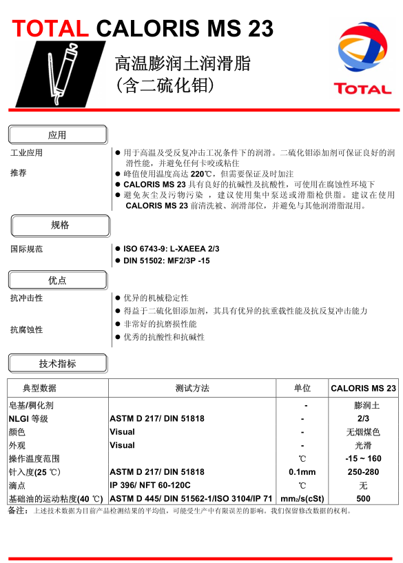 道達(dá)爾CALORIS MS23潤(rùn)滑脂 詳細(xì)說(shuō)明